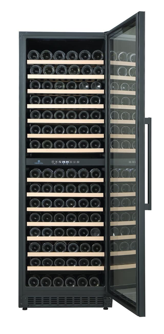 I denne nye modellen får du et elegant vinskap med to kjølesoner (begge soner 5-22°C, men temperaturen i den nederste sonen må være minimum 5-6 grader høyere enn i den øverste sonen), svart glassdør med UV-fritt glass og plass til 171 flasker (Bordeaux).