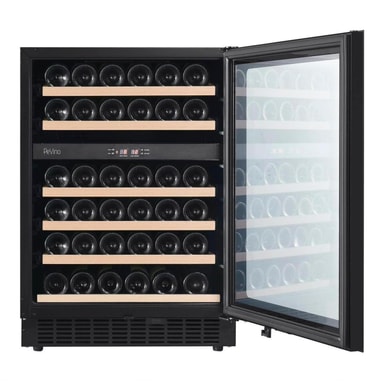 På Pevino Noble-skapet er det også tatt hensyn til detaljene. Legg blant annet merke til det elegante display-panelet med finish i rustfritt stål, info-displayet med oransje bakgrunnslys og en innebygd alarm som utløses ved plutselige endringer i temperatur eller hvis du glemmer å lukke vinskapdøren.