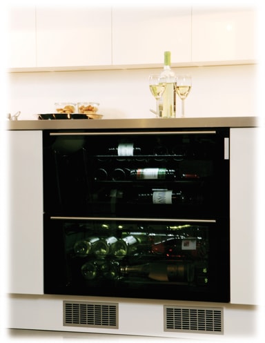 Norcool Cave 55 er en vinoppbevaringsløsning med innovativt og lekkert design. Modulen har en kapasitet på 55 flasker, og integreres lekkert mellom to moduler og krever et nisjemål på 800 mm i bredden. Modulen har to store skuffer med fullt uttrekk og gir god oversikt over utvalget. Sotede glassfronter beskytter vinen mot skadelige UV stråler.  Termostatinnstilling 8 - 15 °C og LED belysning.