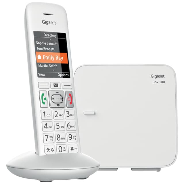 Den trådløse hjemmetelefonen Gigaset Dect E370 passer for alle generasjoner, takket være opplyste taster og praktiske SOS- og zoom-funksjoner. Basen og ladestasjonen er separate, som gir deg større valgfrihet i hverdagen