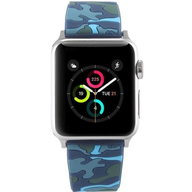 Tøft Camo silikonarmbånd til Apple Watch. Spesifikasjoner Farge: blå Passer: Apple Watch serie 1, 2 Montering: 38mm Justerbar: 135-190mm innhold 1 x Camo armbånd 2 x parentes