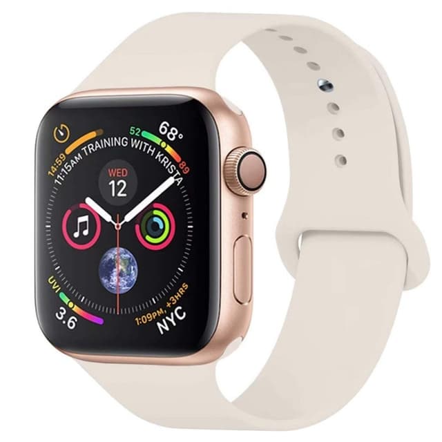 Tøff sportsrem med knappelås. Spesifikasjoner Farge: Antikk hvit Passer: Apple Watch 4 (44mm) Montering: 44mm Håndledd: 160-210mm innhold 1 x silikon sportsbånd