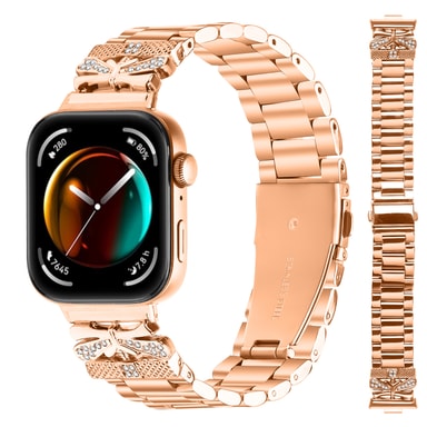 Elegant og stilig: Denne Huawei Fit 3-klokkereimen har tre glitrende sommerfuglsmykker som gir et snev av eleganse og raffinement til håndleddet ditt. Sommerfuglenes intrikate design fanger lyset vakkert og får klokken din til å skille seg ut fra mengden.