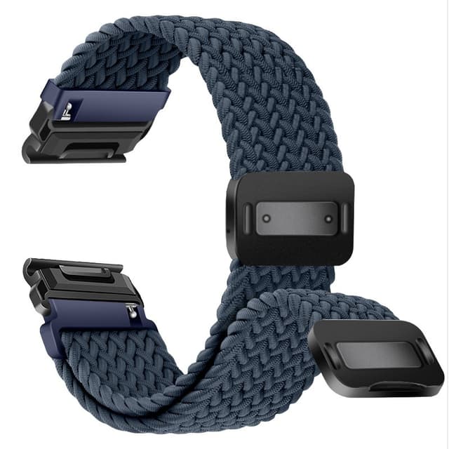 • Hurtigutløsende magnetisk elastisk nylonflettet reim kompatibel med Garmin Fenix-serien Blå 26 mm