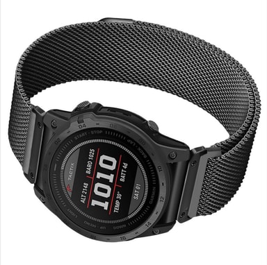 Forbedre din Garmin Fenix 7X Pro/Fenix 58 smartklokke med denne stilige og komfortable Milanese metall klokke reimen. Laget av premium 304 rustfritt stål, den tilbyr eksepsjonell styrke og en polert finish for komfort hele dagen.Les mer om produktet