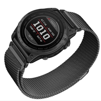 • Hurtigutløser Milanese Metal klokke reim for Garmin Fenix 7X Pro/Fenix 58 Sort 22 mm