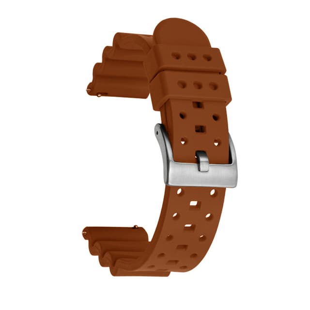 Premium Fluoro Rubber: Denne klokkeremmen er laget av høykvalitets fluorgummi, og tilbyr eksepsjonell fleksibilitet og komfort. Den er motstandsdyktig mot svette, vann og høye temperaturer, noe som gjør den perfekt for hverdagsbruk og intense aktiviteter.