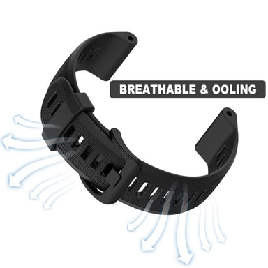 Myk og slitesterk sports-klokkereim laget av vannavstøtende silikon. Stroppen er 22 mm bred og passer til Garmin Forerunner 945 / 935 og Garmin Fenix 5. Reimen er enkel å skifte, verktøy er inkludert.