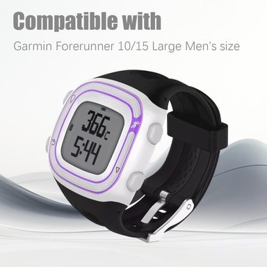 Kompatibel med: Garmin Forerunner 10 og Forerunner 15 herremodeller som har en større urskive og et bredere armbånd
