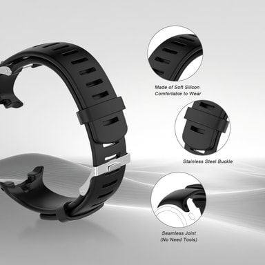 Sporty silikon-klokkereim som passer til Suunto D4/D4i Novo. Reimen er enkelt å montere og skifte, verktøy og fjærstifter følger med. En ekstra reim med økt lengde følger også med, slik at størrelsen på klokkereimen enkelt kan tilpasses ulike behov.