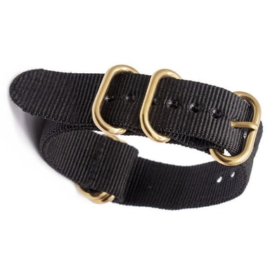 • Klokkerem i nylon med oval gullspenne Sort