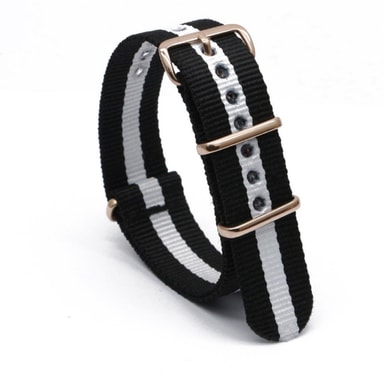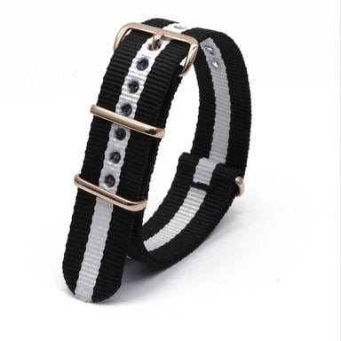 Allsidig stil: Den klassiske kombinasjonen av nylon og spenne utstråler en tidløs og allsidig stil som komplementerer et bredt utvalg av klokker og antrekk. Enten du kler deg ut for en formell anledning eller går for en casual look, vil denne stroppen forbedre stilen din.