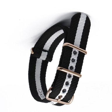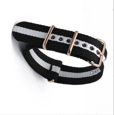 Komfortabel og pustende: Denne klokkeremmen er laget av førsteklasses nylon og tilbyr eksepsjonell pusteevne og komfort, noe som gjør den ideell for hverdagsbruk og til og med anstrengende aktiviteter. Det myke og fleksible materialet tilpasser seg håndleddet ditt, og sikrer en tettsittende og komfortabel passform hele dagen.