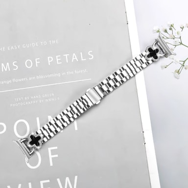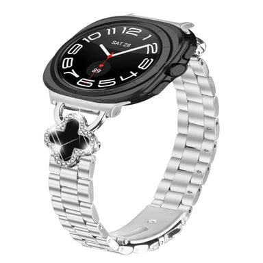 Elegant Kløver Design: Kløverdesignet på denne urremmen kompatibel med Samsung Galaxy Watch7 47MM tilfører et snev av eleganse og sofistikasjon. De omhyggelig utformede kløverlenkene, prydet med glitrende legeringsharpiksaksenter, løfter din smartklokke fra en ren dings til et stilig tilbehør. Perfekt for de som setter pris på raffinerte detaljer og ønsker å uttrykke sin individualitet gjennom sin bærbare teknologi, denne remmen blander sømløst klassisk sjarm med moderne teknologi, og sikrer at du skiller deg ut i enhver setting, enten det er et formelt arrangement eller en uformell utflukt. Kombinasjonen av rustfritt stål og legeringsharpiks sikrer en behagelig passform og motstand mot daglig slitasje.