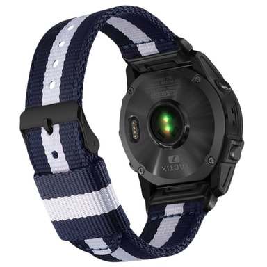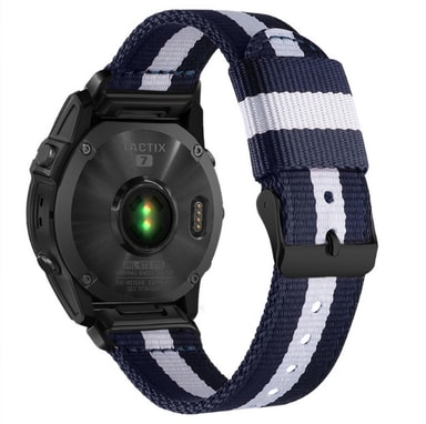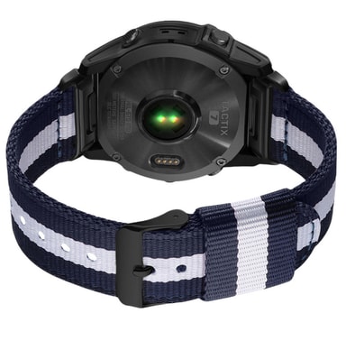 Stilig og allsidig design: Den klassiske nylonvevingen i svart og blått gir et elegant og sofistikert utseende som løfter Garmin Fenix 8/7X Pro. Remmen er like perfekt for treningsstudioet som for hverdagsbruk, og passer til ethvert antrekk.