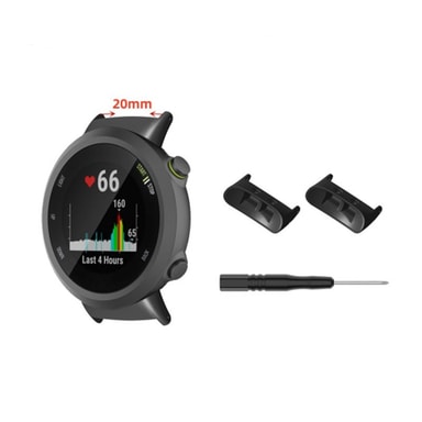 Oppgrader din Garmin Forerunner 45/45S/Swim2 med disse svarte rustfrie stålbåndkoblingene. Sikre, enkle å installere og laget av førsteklasses materialer. Inkluderer skrutrekker for raskt oppsett.Les mer om produktet