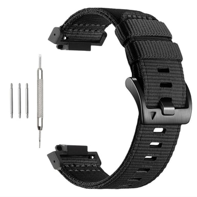 Stilig Allsidighet: Hev utseendet på din G-Shock med vårt allsidige Nylon klokkebånd. Tilgjengelig i en elegant svart farge med matchende svart spenne, utfyller denne Klokkereimen for G-Shock enkelt ethvert antrekk eller anledning. Den minimalistiske designen gir et snev av raffinement til håndleddet ditt, mens den robuste konstruksjonen sikrer at den kan holde tritt med din aktive livsstil. Tilpass dine G-Shock tilbehør og gjør et statement med denne stilige og funksjonelle erstatningsreimen.