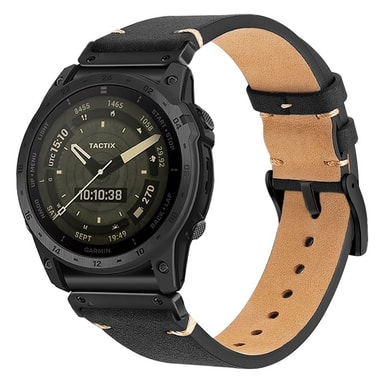 Premium lærreim kompatibel med Garmin Fenix 8/7X/3 - Stilig erstatningsreim Sort 26 mm