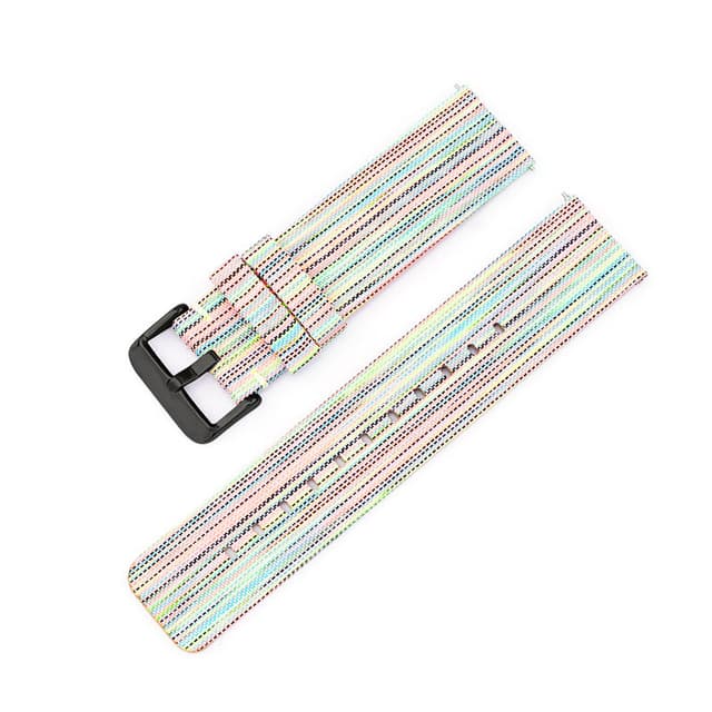 Stilig Regnbuedesign: Hev klokken din med denne livlige regnbuefargede lerretreimen. Det iøynefallende designet gir et snev av personlighet og stil til håndleddet ditt, noe som gjør det til et perfekt tilbehør for ethvert avslappet eller sporty antrekk. Skill deg ut fra mengden med denne unike og fargerike klokkereimen som garantert vil tiltrekke seg oppmerksomhet og komplimenter. Regnbuemønsteret er nøye utformet for å sikre et visuelt tiltalende og langvarig design.