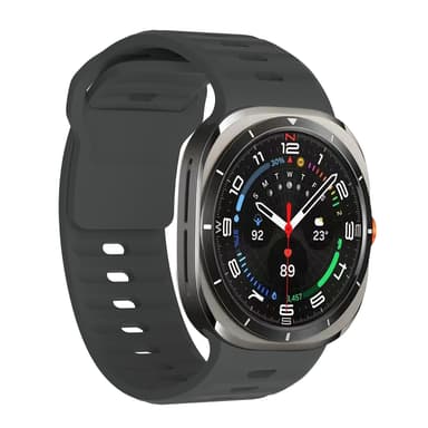 Komfortabel og stilig: Denne klokkereimen er laget av silikon av høy kvalitet og er utrolig behagelig å ha på hele dagen. Det slanke og moderne designet gir Galaxy Watch 7 Ultra et stilfullt preg.