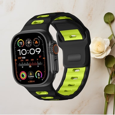• Stilig silikonrem for Apple Watch Series 1-10 Svart + Grønn