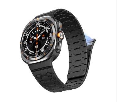 Sikker magnetisk lås: Opplev enestående sikkerhet med vår innovative magnetiske lås. Denne designen sikrer at din Samsung Watch Ultra 47mm holder seg godt på plass, selv under krevende aktiviteter. Den sterke magnetiske forbindelsen gir et pålitelig grep, forhindrer utilsiktet glidning og gir trygghet gjennom hele dagen. Nyt bekvemmeligheten av enkle justeringer og en komfortabel passform, skreddersydd spesielt for din aktive livsstil. Den magnetiske lukkingen er ikke bare sikker, men gir også et snev av moderne eleganse til håndleddet ditt.
