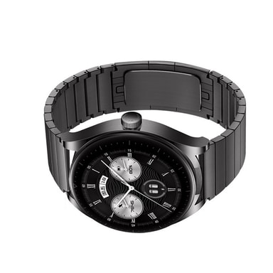 Premium Titanium Bygge: Laget av en blanding av robust titan og rustfritt stål, gir denne klokkeremmen eksepsjonell styrke og en luksuriøs følelse. Den er bygget for å tåle daglig slitasje samtidig som den beholder sitt elegante utseende.