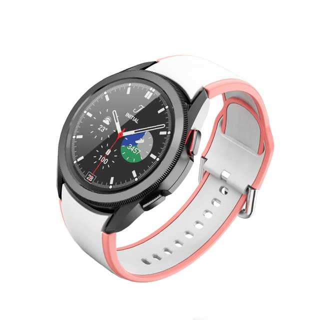 Stilig tofarget design: Gjør Samsung Watch 4 eller 5 enda flottere med denne stilige, tofargede silikonreimen. De kontrasterende hvite og rosa fargene gir håndleddet ditt et personlig preg.