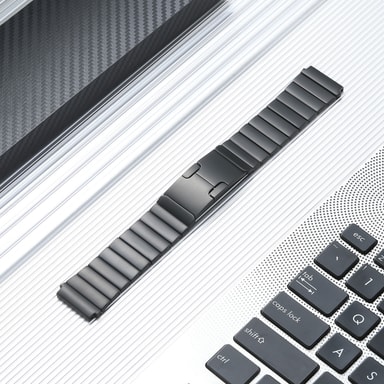 Elegant og Stilig: Hev klokkens estetikk med denne sofistikerte svarte rustfrie stålreimen. Den glatte finishen og moderne designen passer sømløst til enhver klokke, noe som gjør den perfekt for både uformelle og formelle anledninger. Den dype svarte fargen gir et snev av eleganse og raffinement til håndleddet ditt, og sikrer at du gjør et varig inntrykk uansett hvor du går. Opplev den perfekte kombinasjonen av stil og funksjonalitet med denne eksepsjonelle klokkereimen.