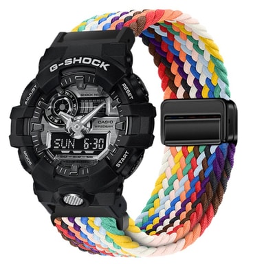 Stilig vevd design: Løft håndleddet ditt med vårt stilige vevde nylon armbånd. Det intrikate vevde mønsteret legger til et snev av sofistikasjon og visuell appell, noe som gjør det til et moteriktig tilbehør for enhver anledning. Tilgjengelig i en rekke farger, kan du velge det perfekte armbåndet for å matche din personlige stil. Designet for kompatibilitet med G-SHOCK Casio GA2100/GA110 klokker, kombinerer dette vevde armbåndet stil og funksjonalitet, og forbedrer ditt generelle utseende. Få komplimenter for din gode smak.