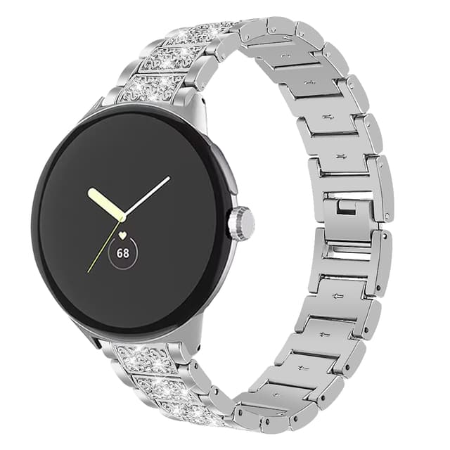 Premium-materiale: Laget av legert rustfritt stål med glitrende rhinestones, for Google Pixel Watch Pixel-båndet har en kombinasjon av mote, adel og eleganse. Overflatepoleringsbehandlingsprosess, som tilbyr elegant glans og tekstur.