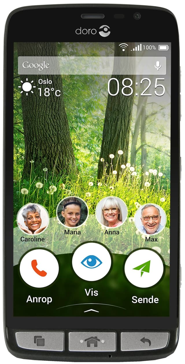 Smarte funksjoner for enkel bruk: Smarttelefonen fra Doro inkluderer forskjellige smarte funksjoner som gjør det svært enkelt å bruke den. Telefonen leveres med fysiske knapper for de nyeste applikasjonene -Start og Tilbake, og en trygghetsknapp som du blant annet kan aktivere til automatisk oppringing av dine kontakter. En praktisk, innebygd lommelykt gjør telefonen enda mer nyttig.