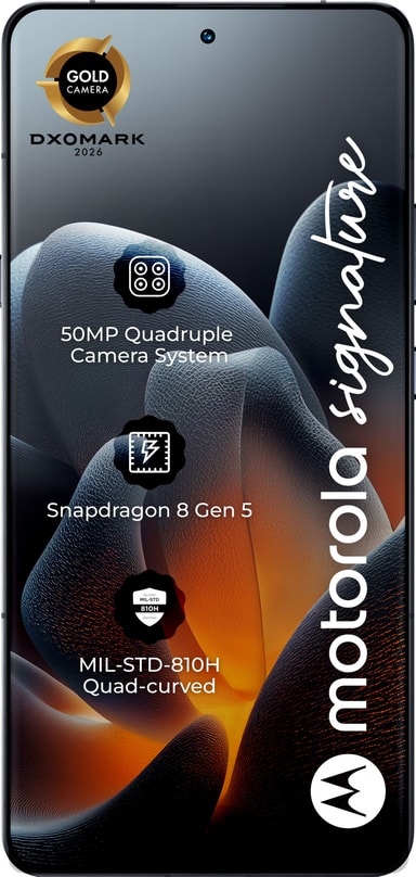 Motorola Signature smarttelefon med et ultra-tynt og varig design gir det ultimate innen ytelse og utmerkede bilder, takket være Sony LYTIA™-sensorer, Snapdragon 8 Gen 5-prosessor, 5200mAh batteri, og støtte for trådløs lading.Les mer om produktet