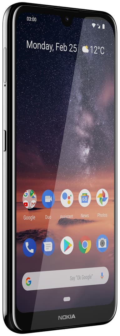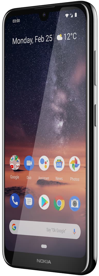 Smarttelefonen Nokia 3.2 er utstyrt med en stor 6,26” touchskjerm som ledsages av en lyssensor som gir deg presis lysstyrke uansett tid på døgnet. Takket være batterikapasiteten på 4000 mAh vil telefonen enkelt kunne brukes i to dager på én lading.