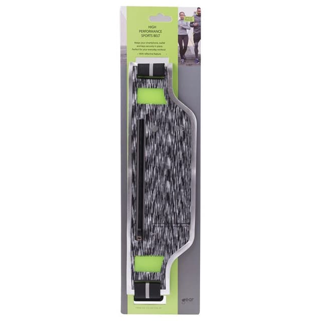 Ta vare på deg selv og mobiltelefonen din mens du trener med dette Gear premium refleksbeltet. Beltet passer smarttelefoner med en skjerm opptil 5.5" og har et elastisk beltemed refleksdetaljer. Beltet har dessuten små hull for hodetelefonkabler, nøkkellomme og egen lomme til mynter og kort.