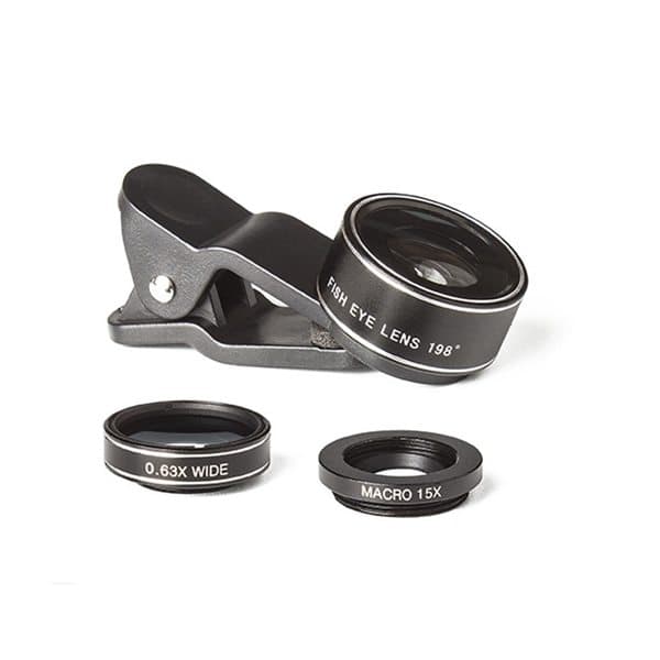De tre linser som inngår er 198 graders Fisheye, vidvinkel (0,63x forstørrelse) samt 15x makro.