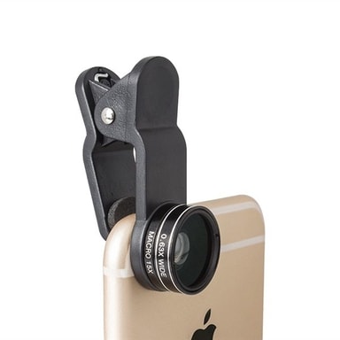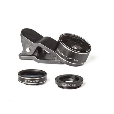 Tre kameralinser med et universalfeste som passer de fleste telefoner.