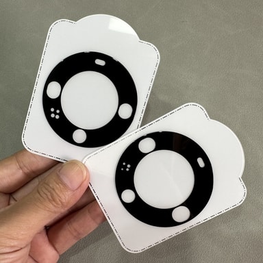 Enkel installasjon: Det er enkelt å sette på linsedekselet med det medfølgende installasjonssettet. Den selvklebende baksiden sikrer boblefri og presis påføring. Juster ganske enkelt dekselet med kameralinsen og trykk forsiktig ned.