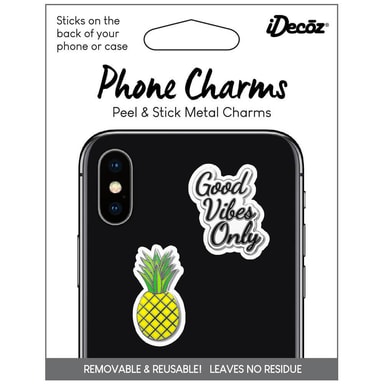 IDECOZ Mobildekorasjon 2 pakning er selvklebende dekorasjoner som du kan bruke til å tilpasse telefonen eller dekselet.