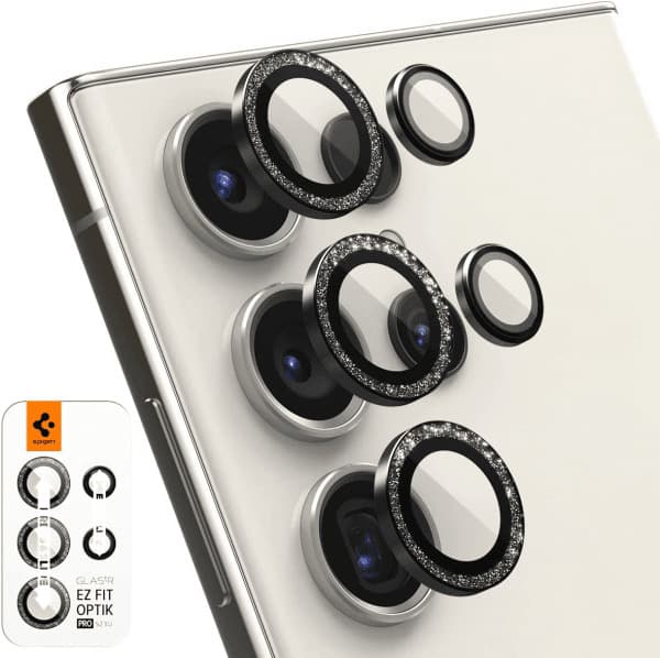 • Spigen Samsung Galaxy S23 Ultra Linsebeskyttelse GLAS.tR EZ Fit Optik Pro Black Glitter