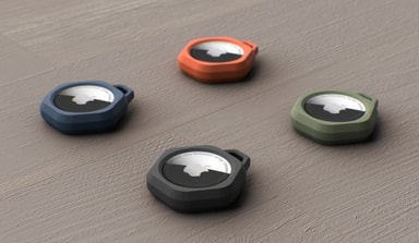 Fleksibel, antimikrobiell silikon. Praktisk karabinfeste inkludert. Designet for Apple AirTag.