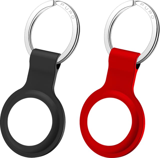 Puro Icon silikonholder med nøkkelring 2 stk. for sporingsbrikke (sort/rød)