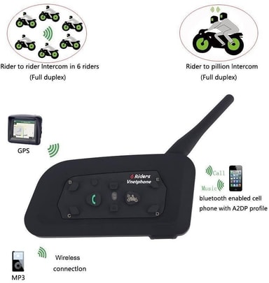 Kommuniser mellom motorsyklister og svar lett på telefonen uten å bruke hendene. For innkommende anrop svarer den automatisk innen 5 sekunder, og hvis du vil avvise samtalen, gjør du det med bare et trykk på en knapp. Kommuniser med andre i en hastighet på opptil 120 km / t eller i en avstand på opptil 1200 meter. Intercom er koblet til mobiltelefonen din med Bluetooth. Det eliminerer støy og andre distraksjoner rundt, slik at hele samtalen høres tydelig selv om du reiser i høy hastighet.
