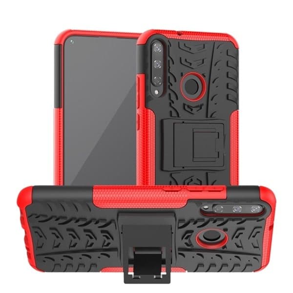 Beskyttelsedeksel med stativ & dekkmønster Huawei Y7P, Svart+Rød
