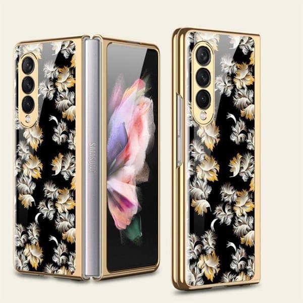 Blommönstrat skal med härdat glas för Samsung Galaxy Z Fold3 5G
