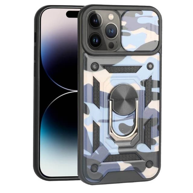 Spesifikasjoner Produkt: Camo deksel Farge: Blå Modell: Apple iPhone 14 Pro Max Modellnr: A2894 Materiale inni: TPU ( Thermo Plastic Urethane ) Materiale utenfor: PC ( Poly Carbonate )