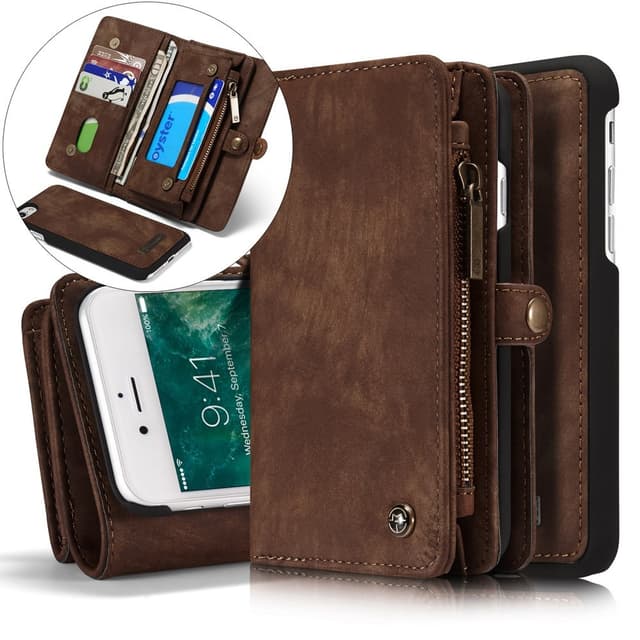 CASEME til iPhone 8/7/SE (2020) Retro Split Lærdeksel/Lommebok-deksel Flere rom - Brun Luksuriøs komplett lommebok som du samtidig kan lagre telefonen i. Elegant design som du kan lagre opptil 9 kort i. Glidelåsrom