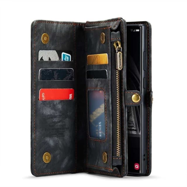 Elegant og praktisk mobilveske med plass til kredittkort, sedler og mynter. Mobiltelefonen festes i et magnetisk avtagbart mobildeksel, som gjør det enkelt å ta telefonen ut av etuiet, perfekt for raske samtaler eller når du vil skille telefonen fra mobilvesken. Skjult magnetisk lukking holder etuiet lukket. Tilgang til telefonens funksjoner.