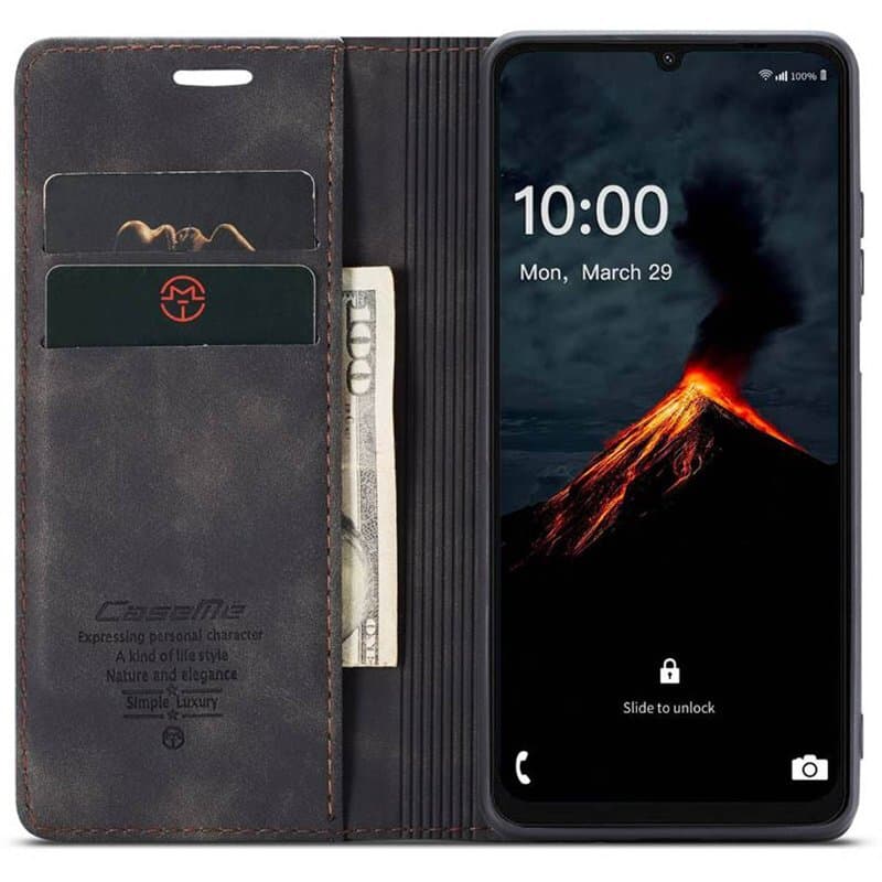 CaseMe Flip deksel kompatibel med Samsung Galaxy A07 4G er et praktisk etui og et symbol på stil og eleganse. Med flere kortspor og et separat rom for sedler, kan du enkelt oppbevare dine viktigste kort og kontanter/kvitteringer. Et skjult magnetlås sikrer at alt holdes på plass og beskytter din telefon mot riper, fall og støt.
