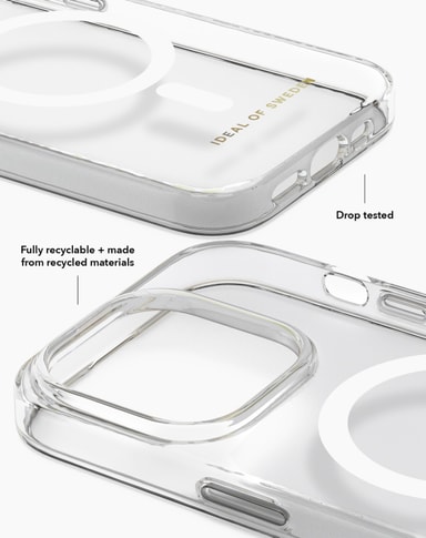 Legg til et ekstra transparent lag med beskyttelse på din mobil. Våre gjennomsiktige deksler er dropp-sikre, har en skreddersydd beskyttende passform, og forhøyede kanter som beskytter kamera og skjermen. Optimalisert for å forhindre gulning, og er laget av resirkulerte og ikke-animalske materialer. Dette dekselet er MagSafe kompatibelt.